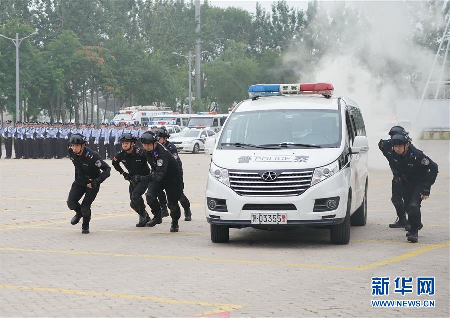7月31日,河北出入境边防检查总站的民警在进行紧急出动演练。 当日,河北出入境边防检查总站在秦皇岛市举行百日练兵汇报演练,演练包括紧急出动、应急处突、模拟抓捕等课目,检验执勤民警处置突发事件的能力。 新华社记者 杨世尧 摄