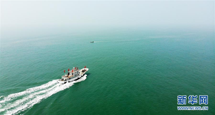 7月16日,“拥军船”向苏山岛行驶(无人机照片)。新华社记者王凯摄
