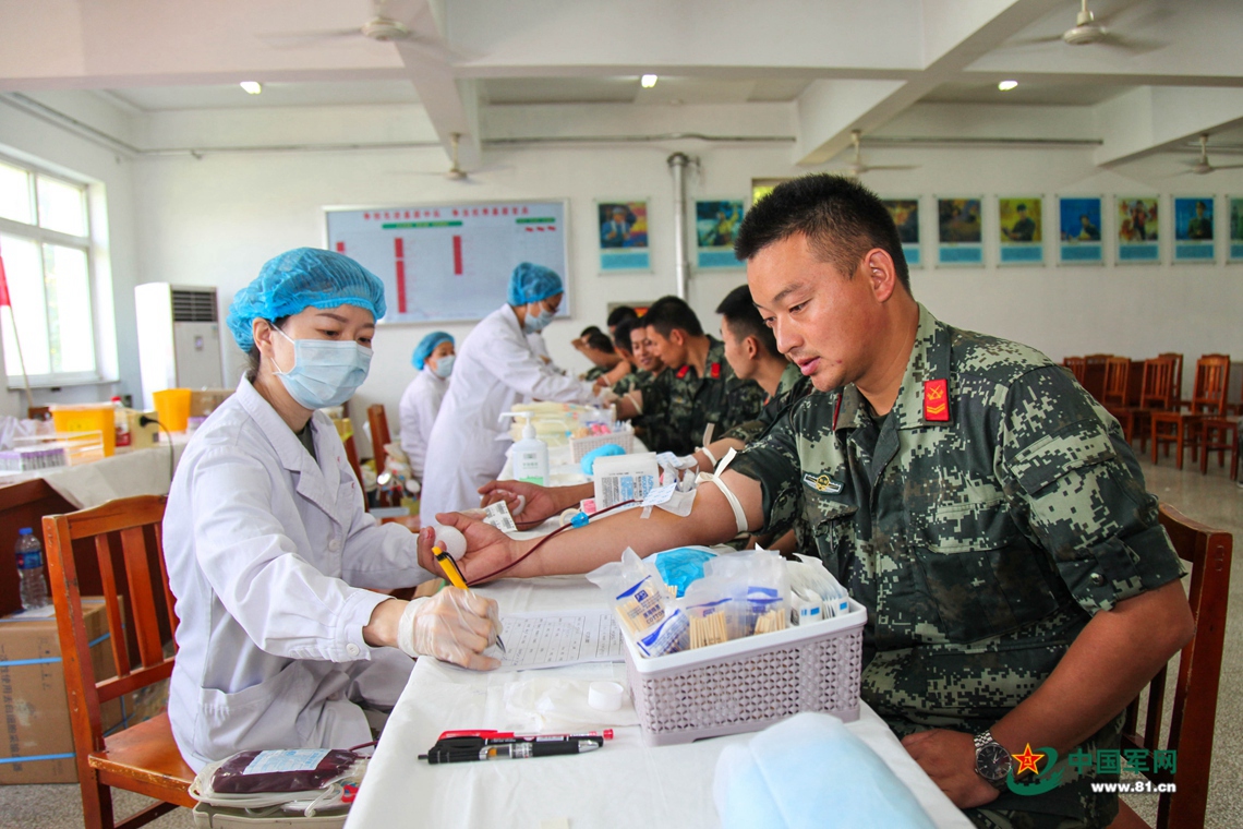 官兵正在献血。杨慧斌 摄