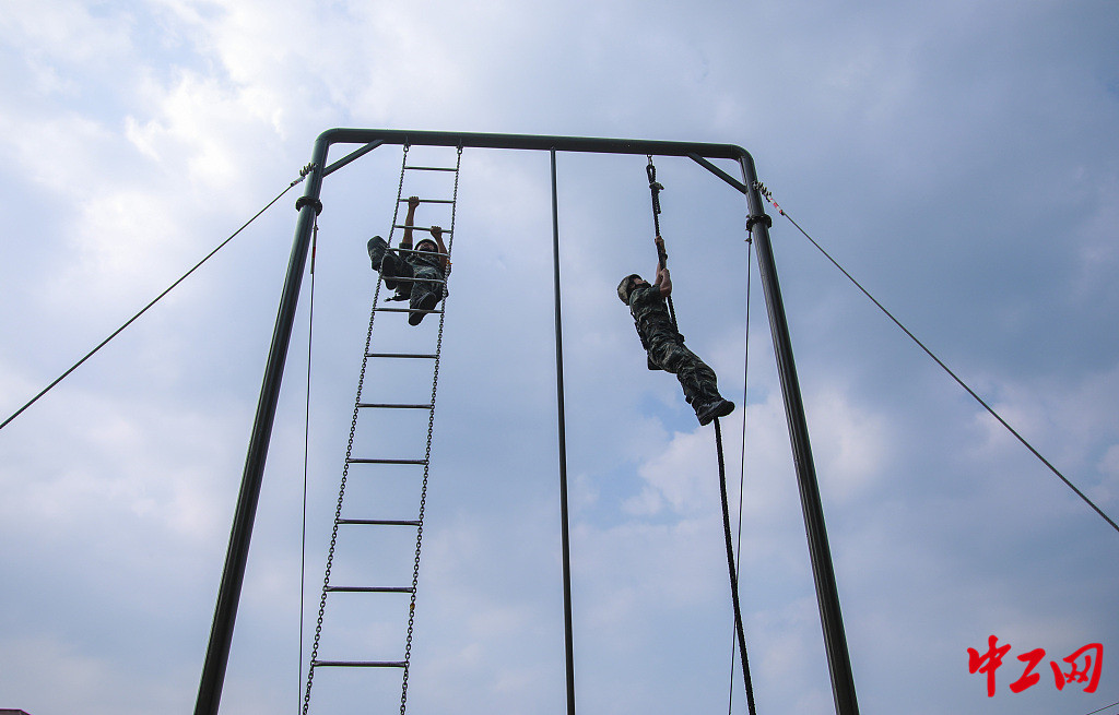 2020年8月1日,郑州,官兵正在进行攀登训练。蔡霖伟/人民视觉