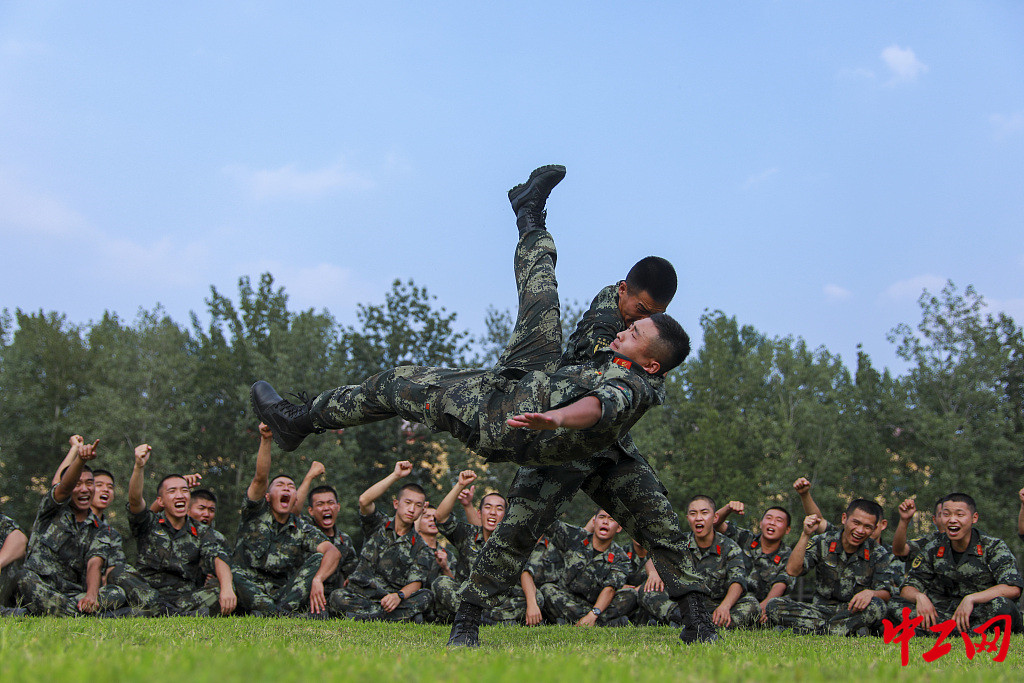 2020年8月1日,郑州,官兵正在进行搏击对抗。蔡霖伟/人民视觉