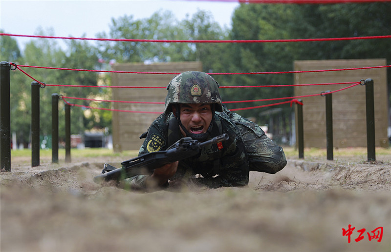 2020年8月1日,郑州,在武警第一机动总队某支队的练兵场上,官兵们在高温酷暑下练枪法、跑障碍、拼体能……全面提升官兵综合能力素质,为遂行多样化任务打下基础。蔡霖伟/人民视觉