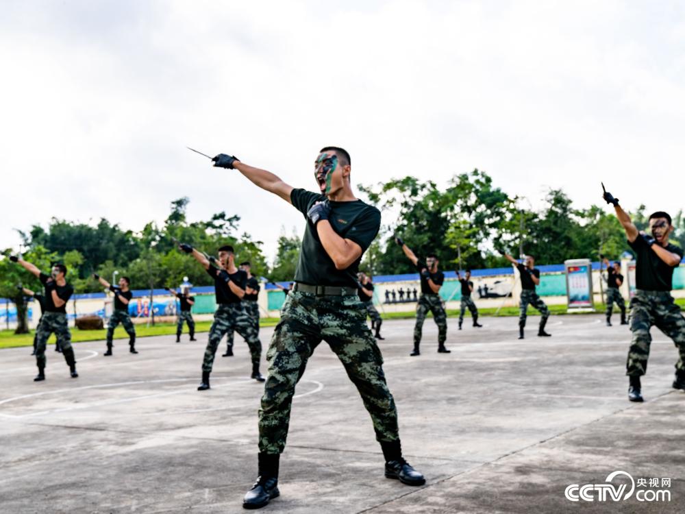 央视网消息:立秋时节练兵忙。8月7日,在武警广西总队钦州支队训练场上,青年官兵们喊声阵阵,杀声震天。支队官兵始终坚持以练兵备战为导向,紧抓练兵时机,开展了匕首格斗术、单兵持枪动作、战斗队形以及特战攀登等多课目强化训练,进一步锤炼官兵军事素质和作战能力,磨砺顽强的战斗作风,为遂行多样化任务能力打下了坚实基础。图为特战队员进行匕首格斗术训练。(柴浩)