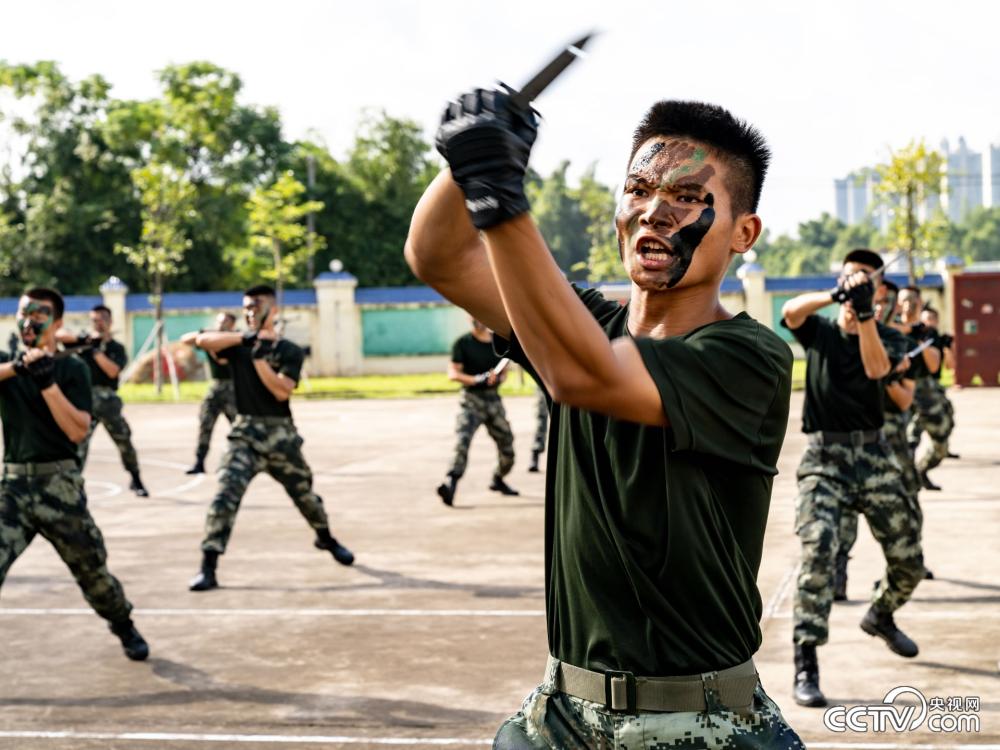 图为特战队员进行匕首格斗术训练士气高昂。(柴浩)