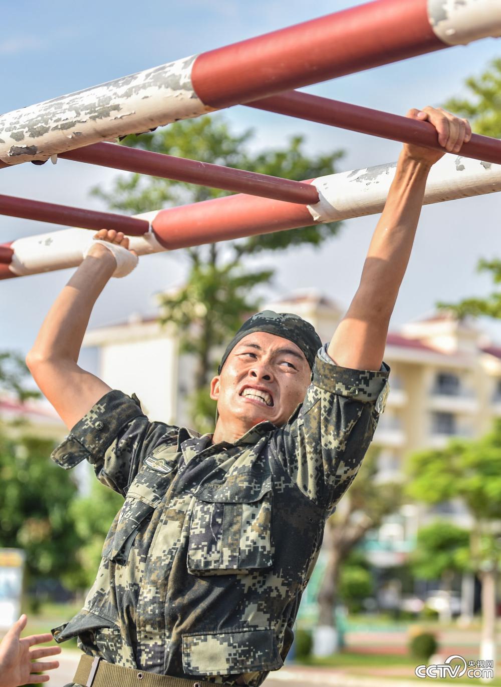 图为400米障碍科目中,一名参赛队员快速通过云梯。(陈鑫、赵昕阳、余海洋 摄影报道)
