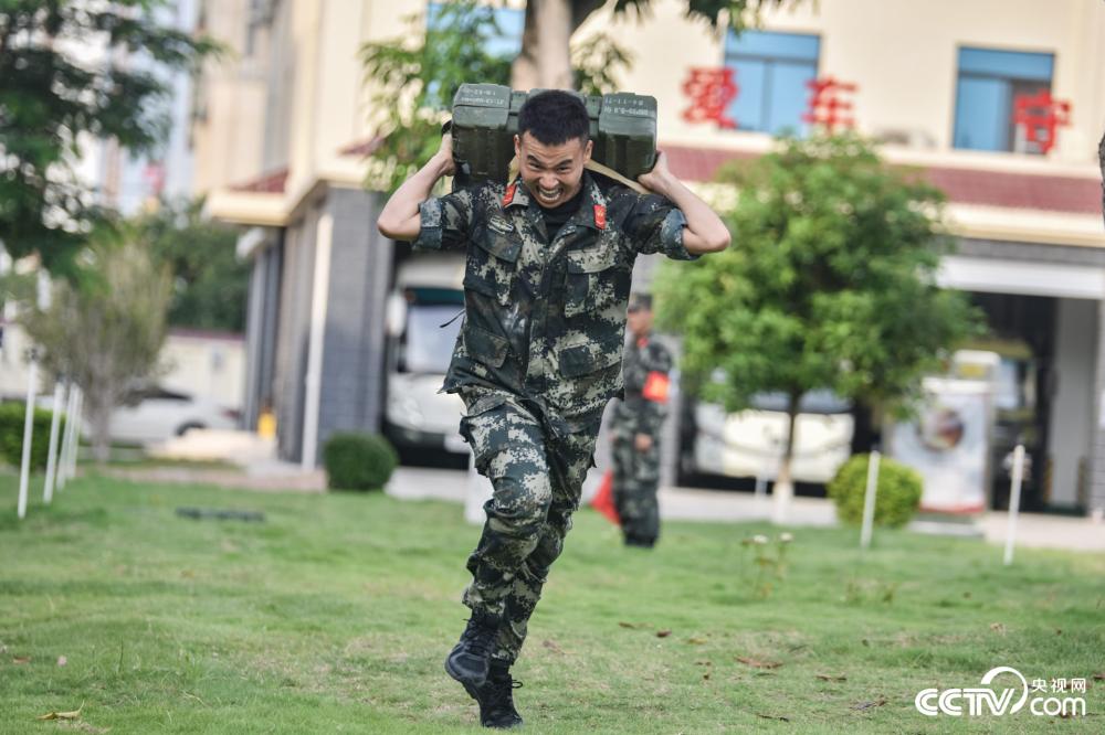 图为负重组合课目中,一名参赛队员向终点发向冲刺。(陈鑫、赵昕阳、余海洋 摄影报道)