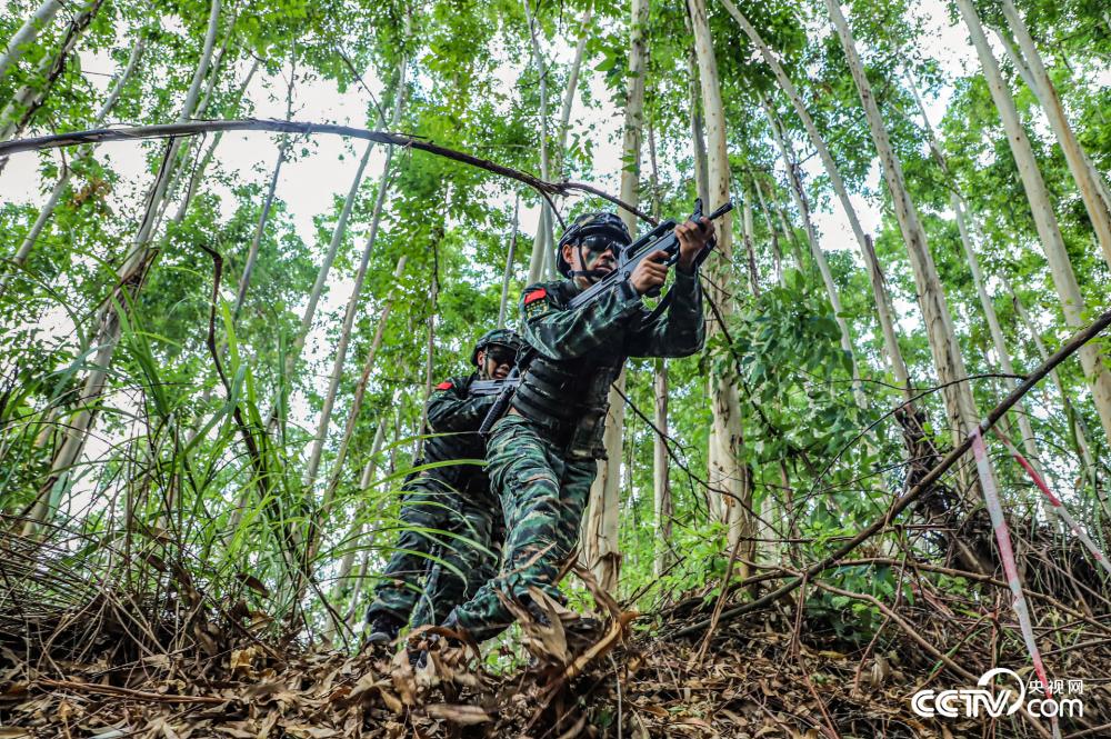 图为特战队员快速跨越沟壑。(刘明 陈俊成 潘懿豪)
