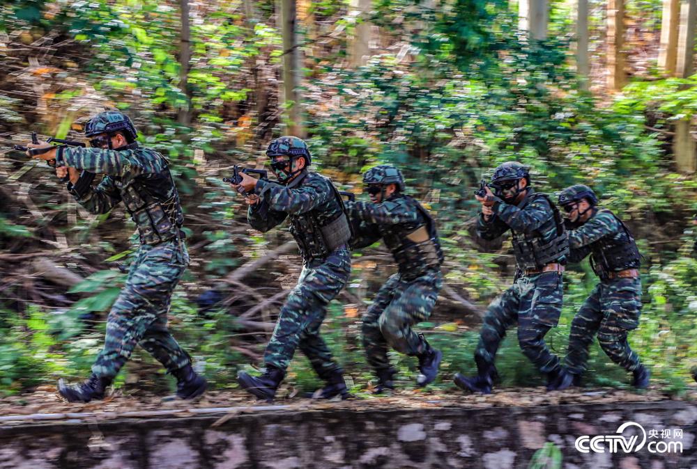 图为特战队员快速追击。(刘明 陈俊成 潘懿豪)