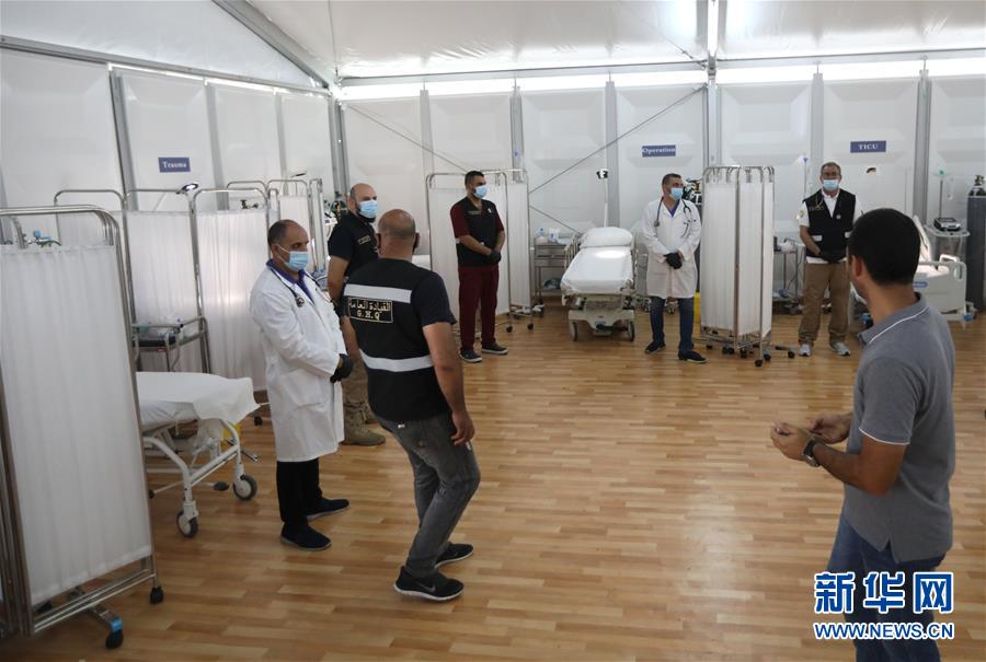 8月14日,在黎巴嫩首都贝鲁特的阿什拉菲耶区,由卡塔尔援助的一家野战医院开始投入使用。 黎巴嫩首都贝鲁特港口区发生爆炸后,多家由外国援助的野战医院搭建完成并投入使用。 新华社发(比拉尔·贾维希摄)