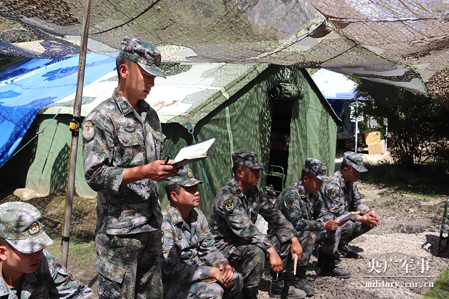 西藏军区某旅在野外驻训场开展以“讲好抗战故事,重温抗战历史”为主题的党日活动。铭记历史,传承革命精神。(作者:金海伟 孙旺)