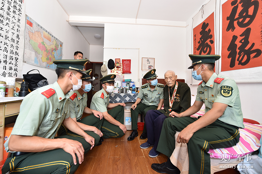 武警天津总队执勤四支队组织官兵前往驻地光荣院看望革命老兵苏义名。聆听战争故事,感悟革命精神,向革命老兵表达深切的敬意和真挚的问候。(作者:王良 周旭升 陈晓宇)