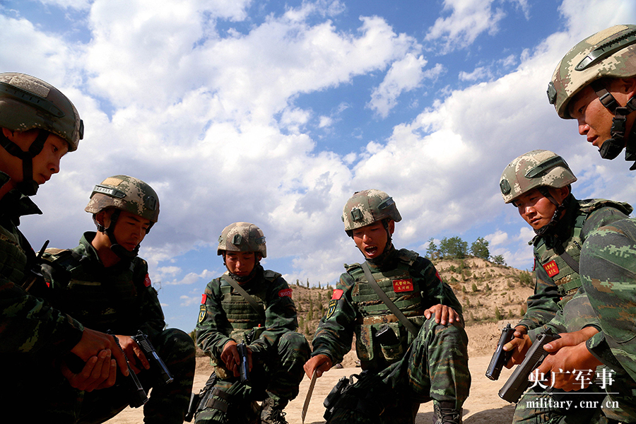 头顶烈日,脚踏戈壁。手握钢枪,肩背行囊。武警甘肃总队白银支队紧贴反恐任务战斗特点,组织开展实战化军事训练,摔打锤炼特战队员战斗能力。(作者:张倚铭 房立臣 张雪松)