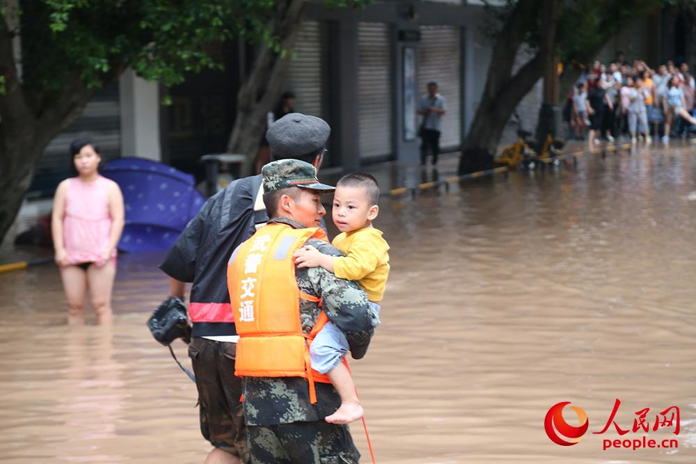 乐山遭遇强降雨 官兵不舍昼夜紧急救援