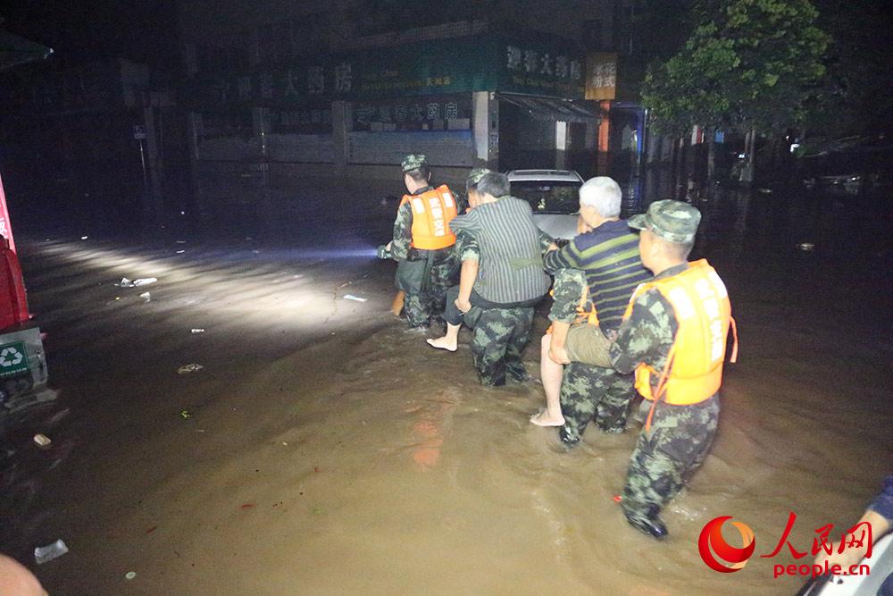 乐山遭遇强降雨 官兵不舍昼夜紧急救援