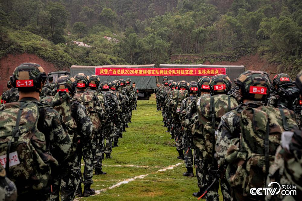 央视网消息:为进一步聚焦练兵备战,大力提升特战分队反恐制胜本领,近日,武警广西总队玉林、北海支队的50余名特战精英围绕武器操作、小队战术、特种通信、驾驶、攀登等20多个课目,在广西玉林市某训练基地展开特战小队对抗交流检验,在实战中检验个人临危处置和小组协同作战能力。