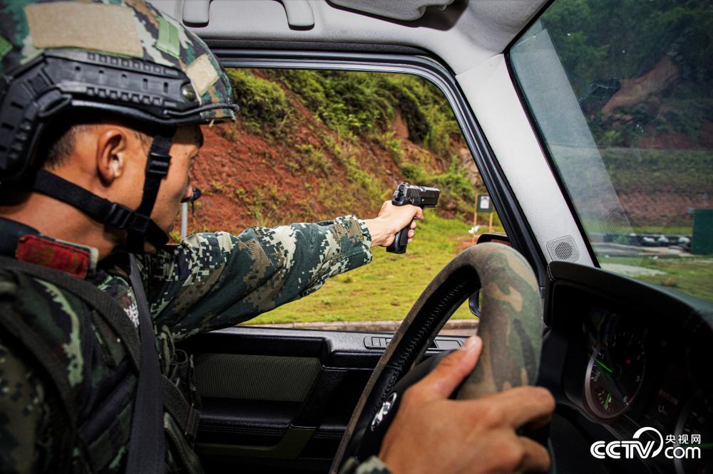 个人全能课目中,一名特战队员正在进行驾驶射击。张腾飞摄