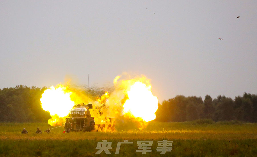 新疆军区某火力团多兵种实弹射击演练