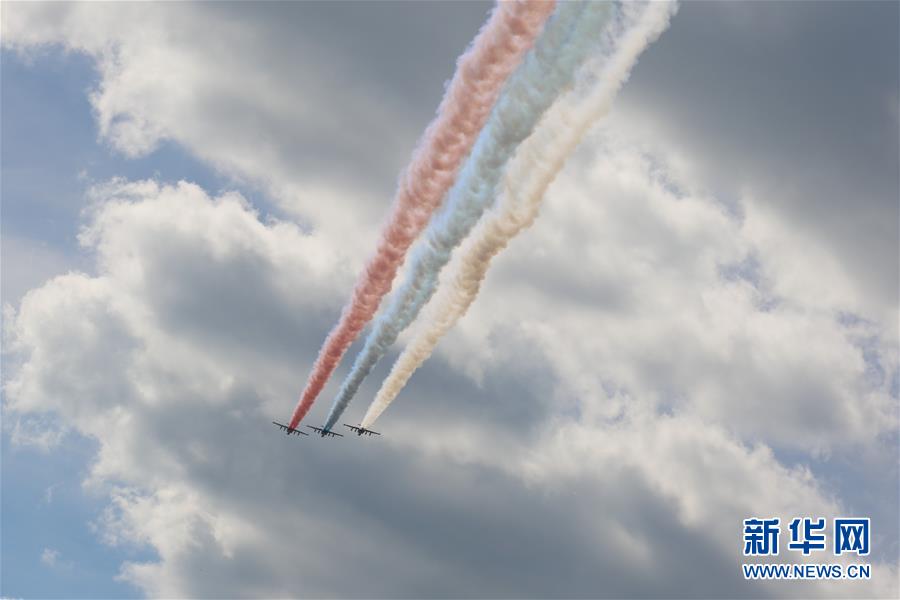 8月23日,俄罗斯战机飞过“爱国者”公园上空。 新华社记者 田定宇 摄