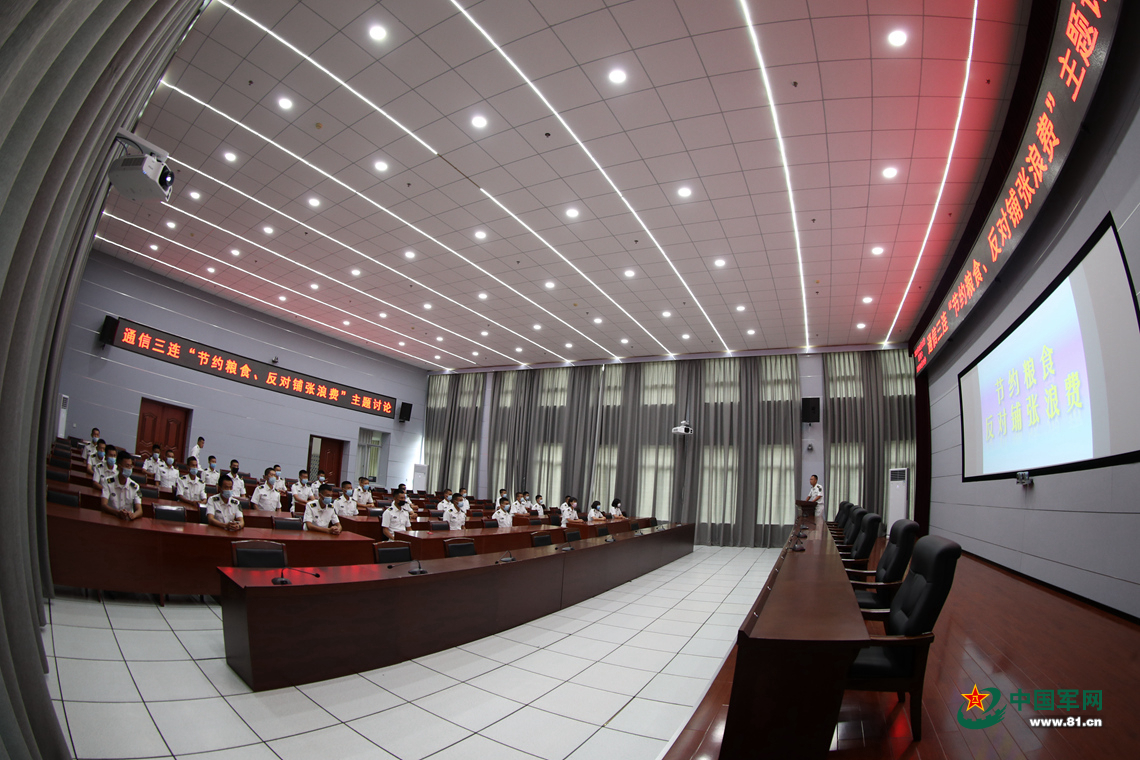 官兵进行“节约粮食,反对铺张浪费”主题讨论。