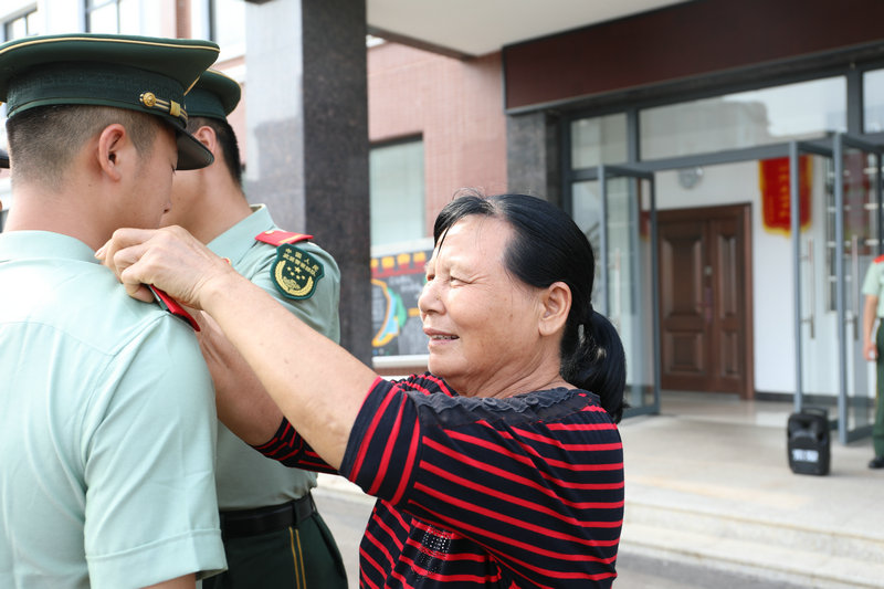 8月30日,武警广西总队贵港支队平南中队举行宣布退役命令仪式,他们还专门邀请了驻地拥军18年的“兵妈妈”刘佩凤一起为退伍老兵卸下警衔、领花、帽徽,那一刻,昔日的钢铁硬汉哭成“泪人”,他们难舍不是妈妈却胜似妈妈的刘佩凤、难舍朝夕相处的战友、难舍曾经一起战斗过的钢枪、难舍挥洒无数汗水的“三尺岗台”,他们即将告别军营,无悔自己的绿色青春,无悔光荣的军旅生涯。