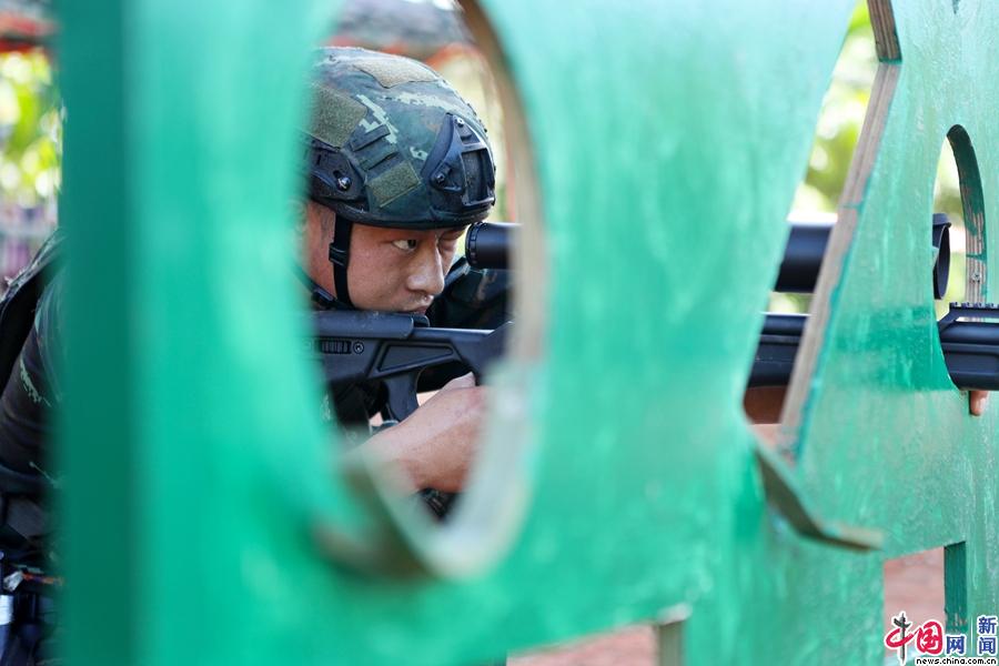 参赛队员进行个人全能比武时利用射孔对目标进行精确狙击。
