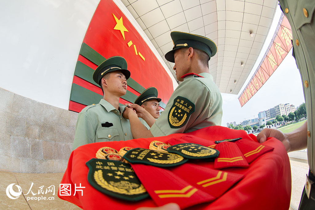 8月30日,武警广西总队机动支队举行满服役期士兵交接枪支与卸衔仪式。