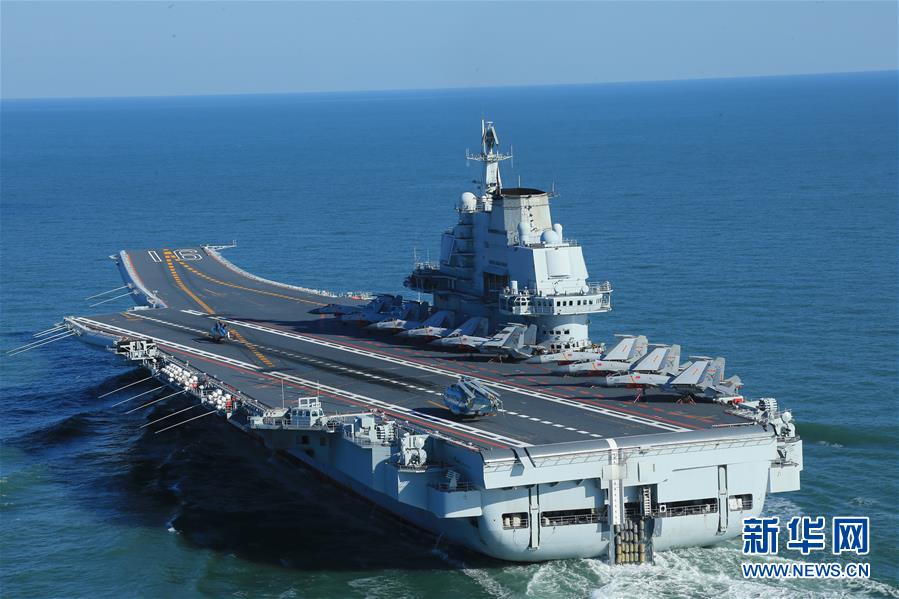 在某海域,辽宁舰多型舰载机列阵甲板(资料照片)。 新华社发(智文书 摄)