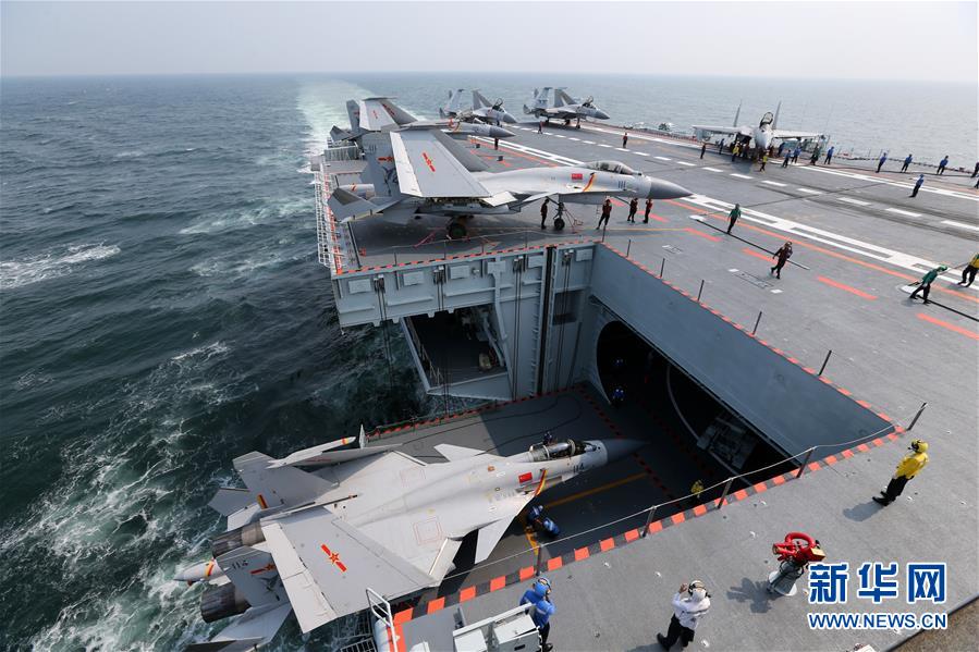 一架歼-15舰载战斗机从辽宁舰调运平台调出(资料照片)。新华社发(智文书 摄)