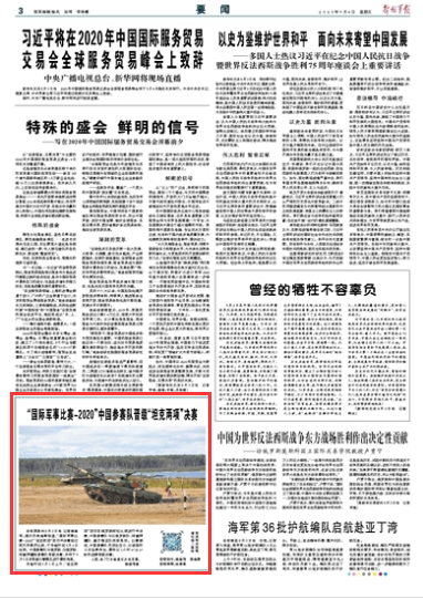 解放军报莫斯科9月3日电 记者赖瑜鸿、通讯员荆海辉报道:“国际军事比赛-2020”“坦克两项”项目半决赛经过两天的激烈比拼,于当地时间9月2日结束。中国参赛队与俄罗斯、白俄罗斯、阿塞拜疆等参赛队晋级决赛,并将于9月5日采取接力赛模式进行最终角逐。