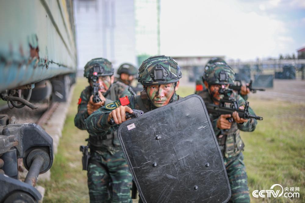 图为突击队员从车厢两侧隐蔽接近。(王良、董浩、周旭升、张鹏)