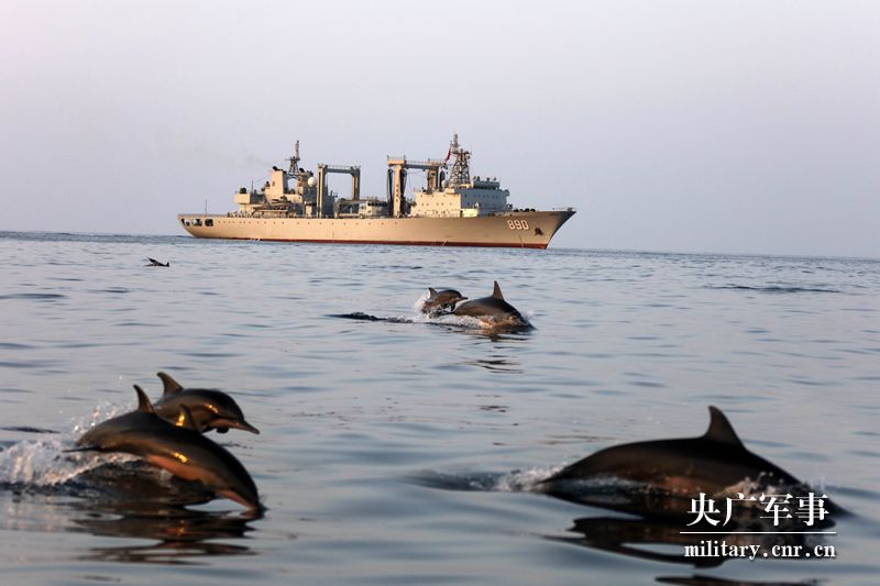 央广网9月7日消息 (钟魁润)近日,中国海军第35批护航编队在亚丁湾航行时与一群海豚不期而遇。数百头海豚跟随着军舰跳跃追逐,持续两个多小时才离去,为在海上连续护航130多天没有靠港休整的官兵带来不少轻松和快乐。