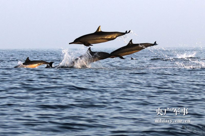 亚丁湾的碧波中,海豚与中国军舰共舞