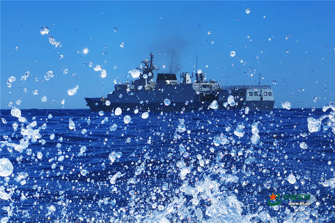 亚丁湾的碧波中,海豚与中国军舰共舞