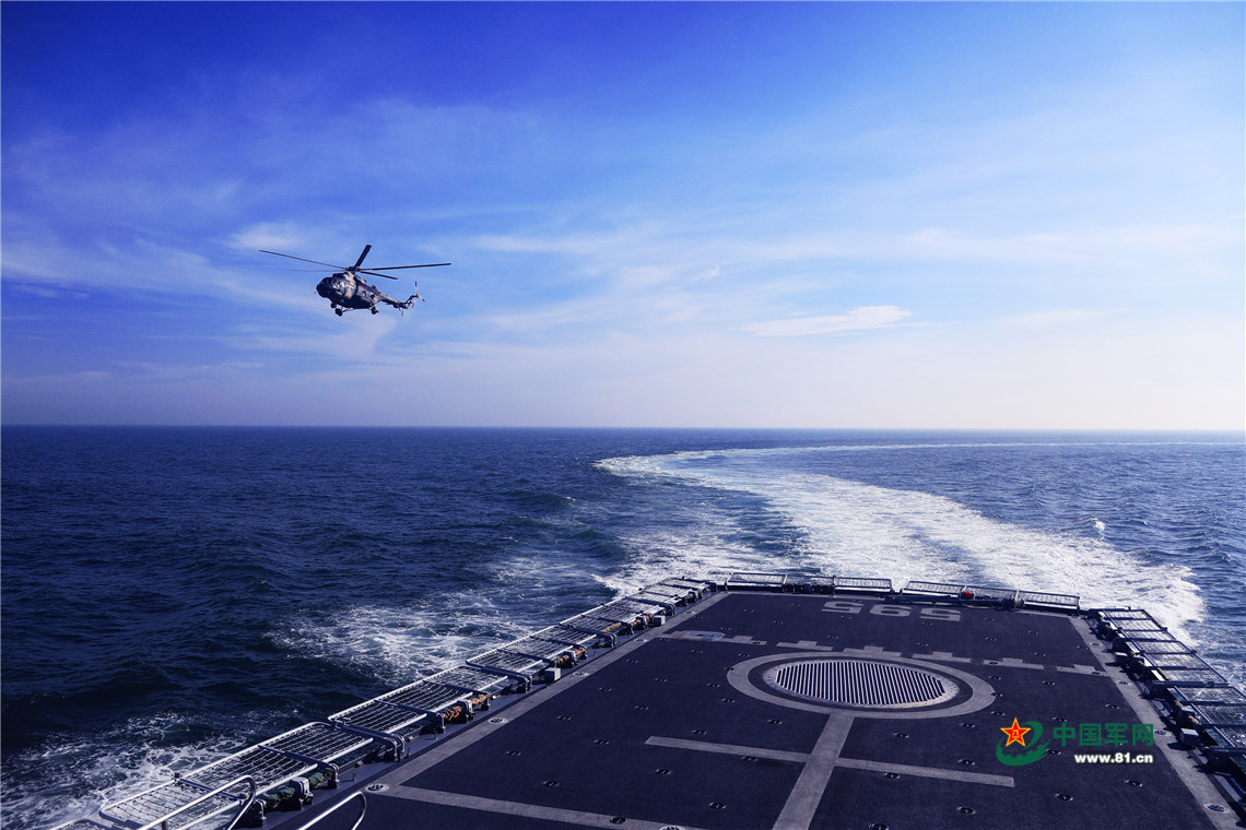 亚丁湾的碧波中,海豚与中国军舰共舞