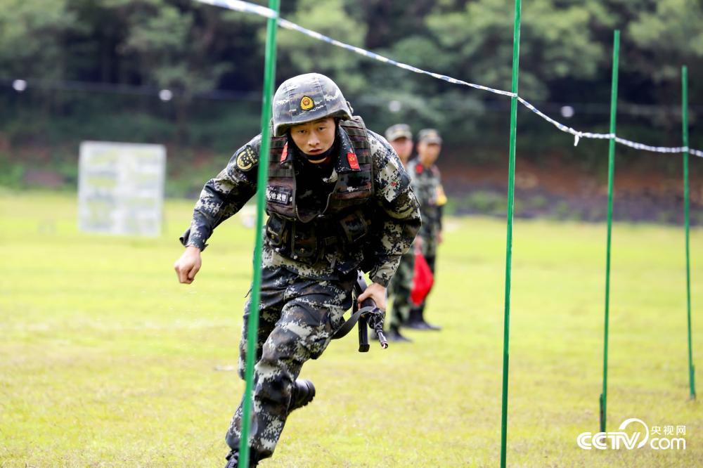 图为参赛官兵正在进行蛇形跑。(奎子清)