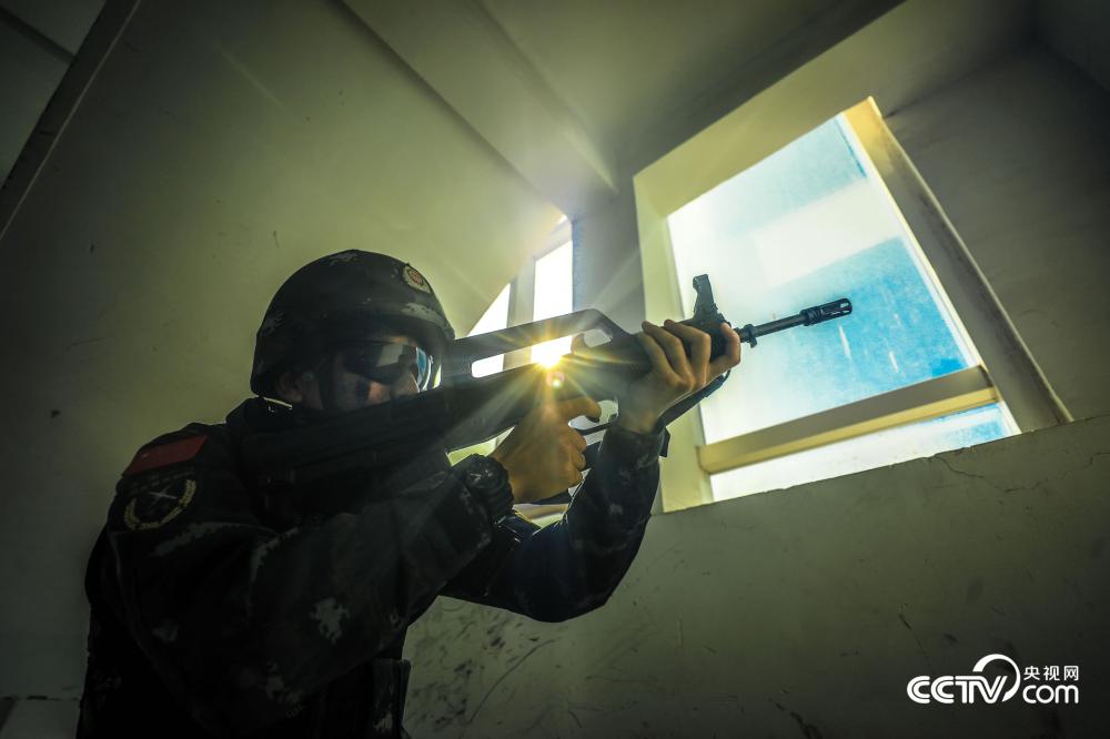 图为武警特战队员利用地形侦察情况。(王良、钱志强)