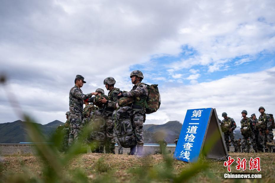 图为9月11日,伞降教员对参训队员伞包进行二次检查。 中新社记者 何蓬磊 摄