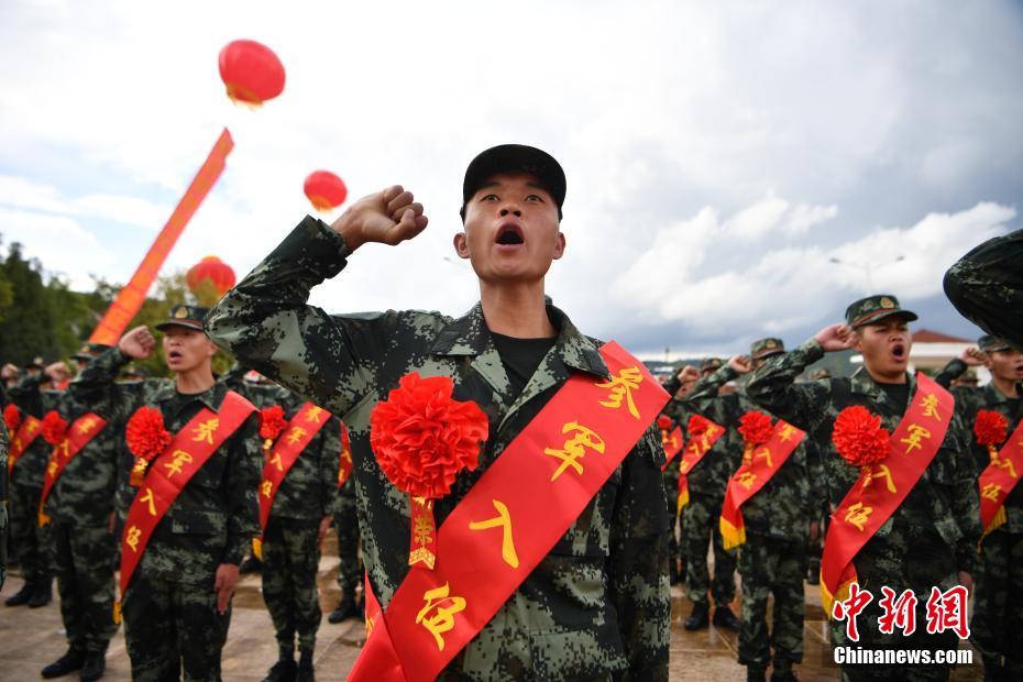 9月15日,新兵宣誓。当日,2020年度云南省新兵出征仪式在昆明市民兵训练基地举行,现场500余名新兵代表全省应征入伍青年受领入伍命令,踏上军旅征程。中新社记者 刘冉阳 摄