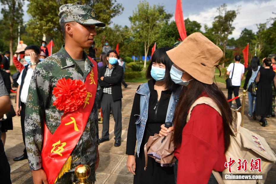 9月15日,仪式结束后,新兵与家属告别。当日,2020年度云南省新兵出征仪式在昆明市民兵训练基地举行,现场500余名新兵代表全省应征入伍青年受领入伍命令,踏上军旅征程。中新社记者 刘冉阳 摄