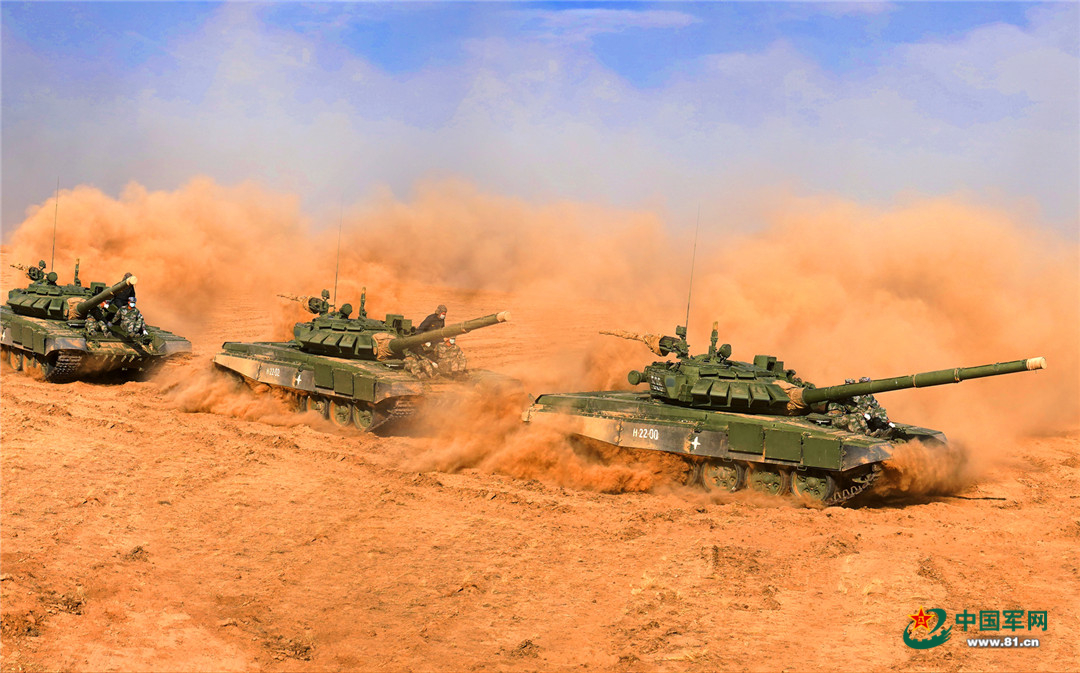 在俄军指导下,中方参演部队坦克分队开展驾驶训练。