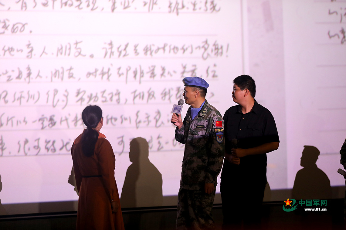 鲁成军在维和战场写给妻儿的家书在首映礼现场曝光,鲁爸爸现场朗读家书,点燃了全场观众的泪点。