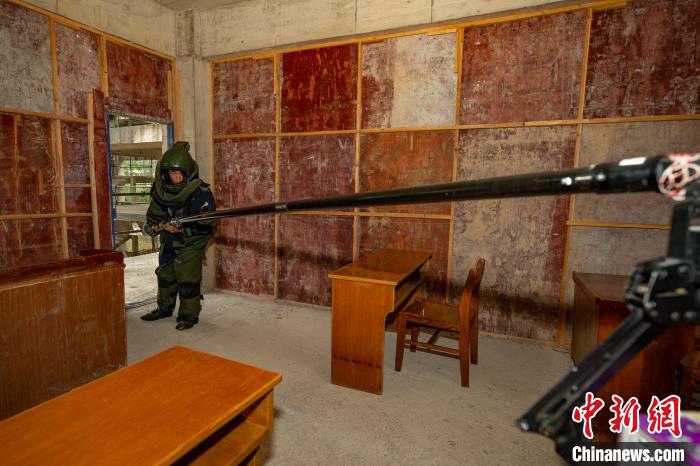 参赛队员使用机械手臂转移“爆炸物”。 果志远 摄