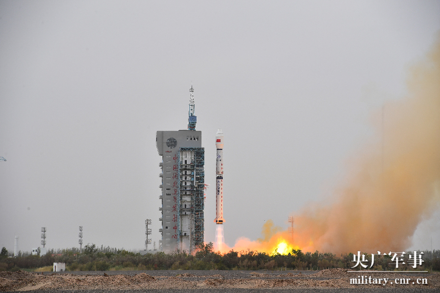 ▲搭载海洋二号C卫星的长征四号乙运载火箭在酒泉卫星发射中心点火发射。汪江波 摄