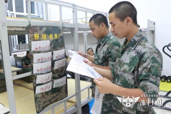 营养的知识大餐保证新兵“吃”的过瘾。宿舍各类报刊摆放整齐,各类书籍应有尽有,可以满足新战友日常阅读需求。