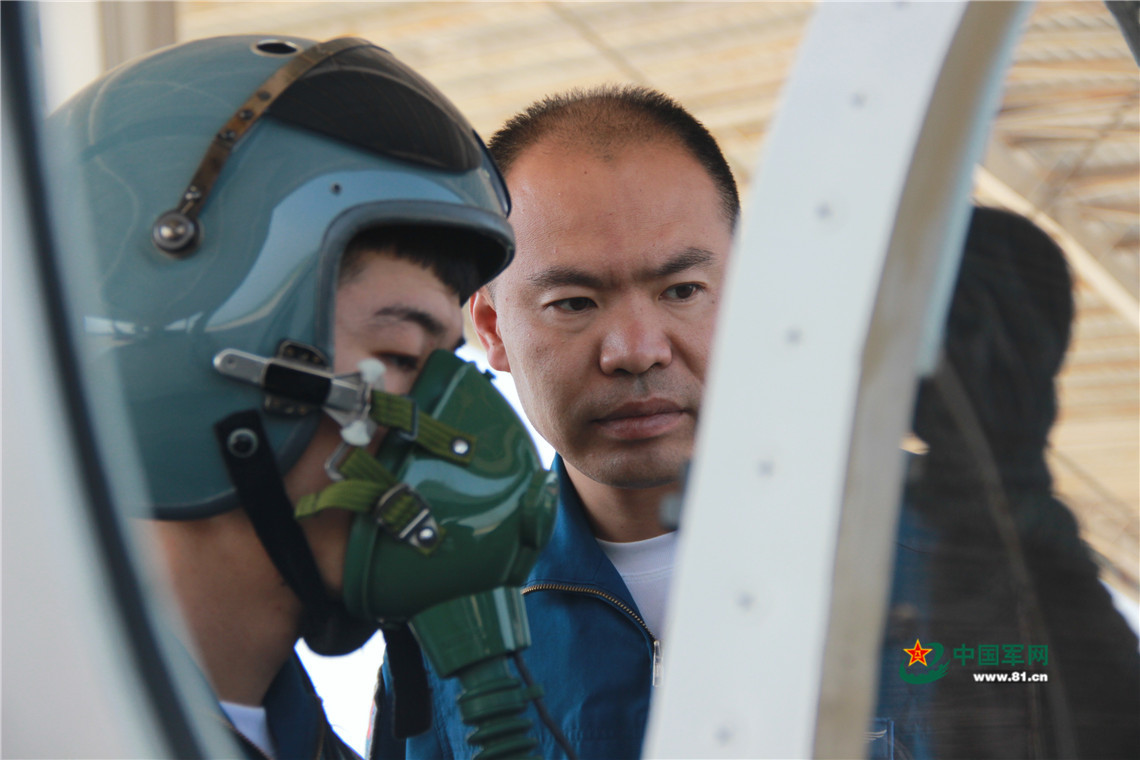 教官为学员确认装备工作情况。