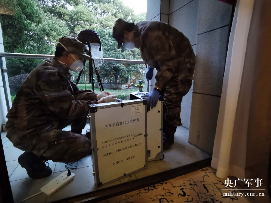 环境监测中,专家组队员实施蚊虫采样。(邵龙飞 摄)