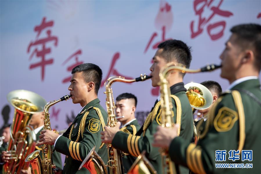 9月25日,武警军乐团团员在集体婚礼现场演奏。 当日,武警宁夏总队第二届“强军有你,真情相拥”集体婚礼在银川举行。在国庆和中秋佳节来临之际,20对新人在亲属和战友的祝福下步入婚姻殿堂。 新华社记者 冯开华 摄