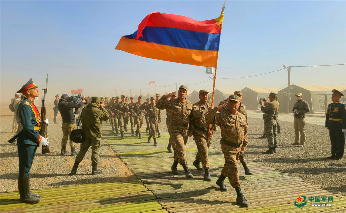 亚美尼亚参演部队受阅方队通过阅兵台。