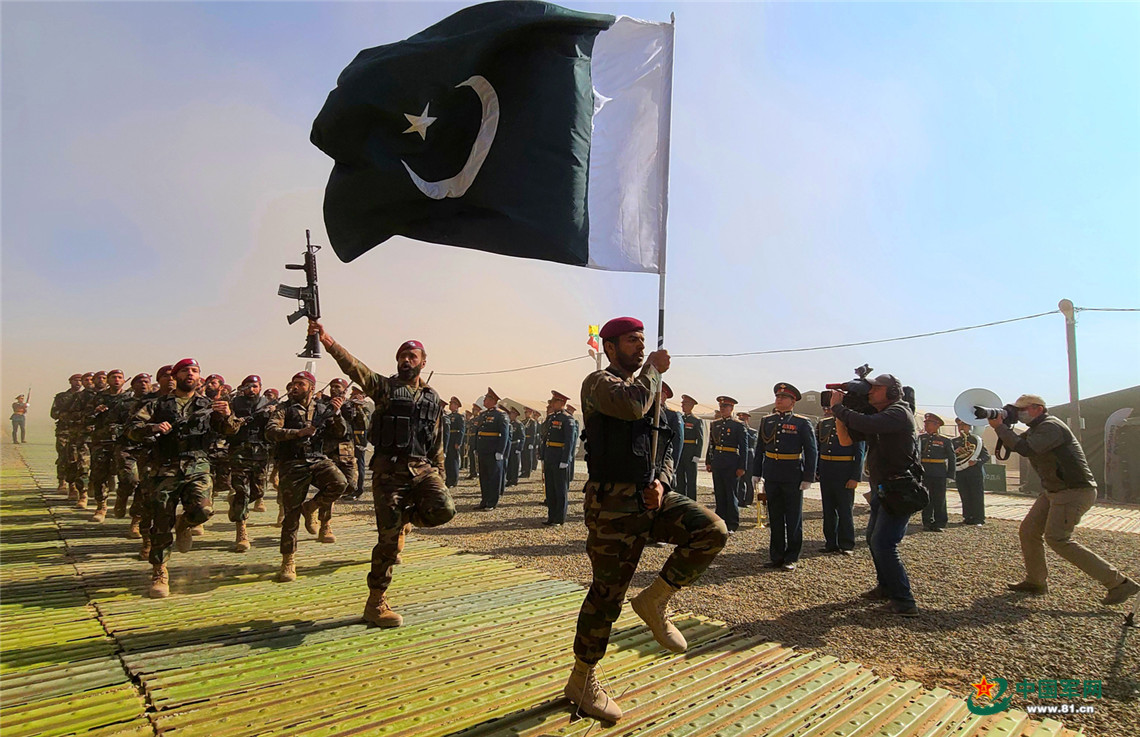 巴基斯坦参演部队受阅方队通过阅兵台。