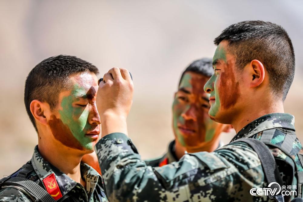 图为特战队员相互涂迷彩伪装。(杨浩)